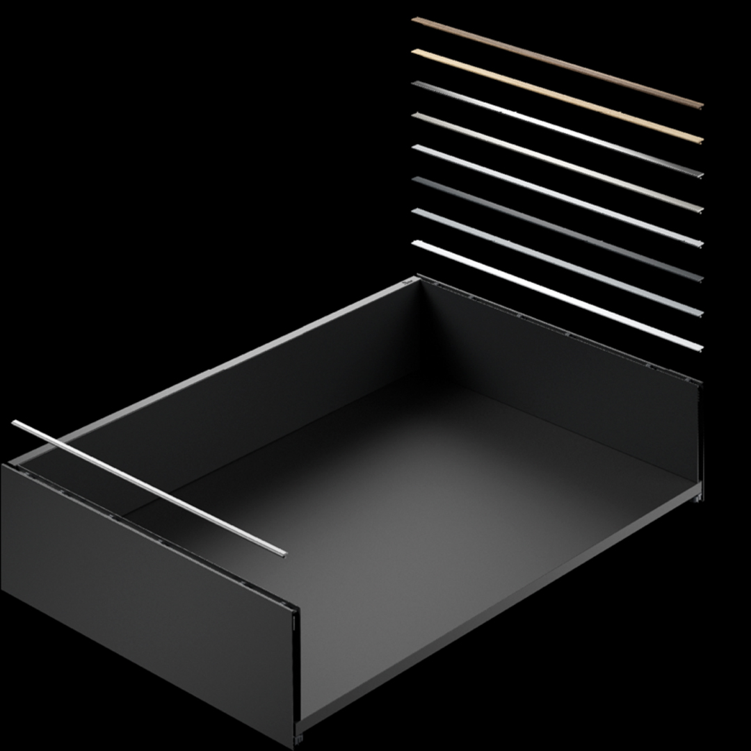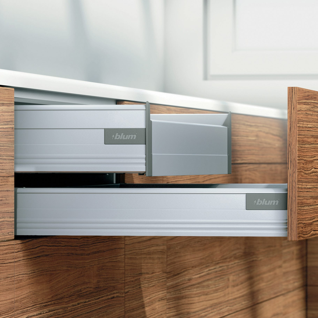 LegraBox vine produs din oțel și este accesibil în culorile gri, antracit și metalic. TandemBox sunt produse din metal vopsit în culori gri, alb, negru, antracit. Sunt dotate cu railinguri patrulatere și cilindrice. Sertarele MetaBox sunt versiunea economă a sertarelor Blum, diferența fiind grosimea pereților metalici, railinguri cilindrice și un aspect mai uzual.