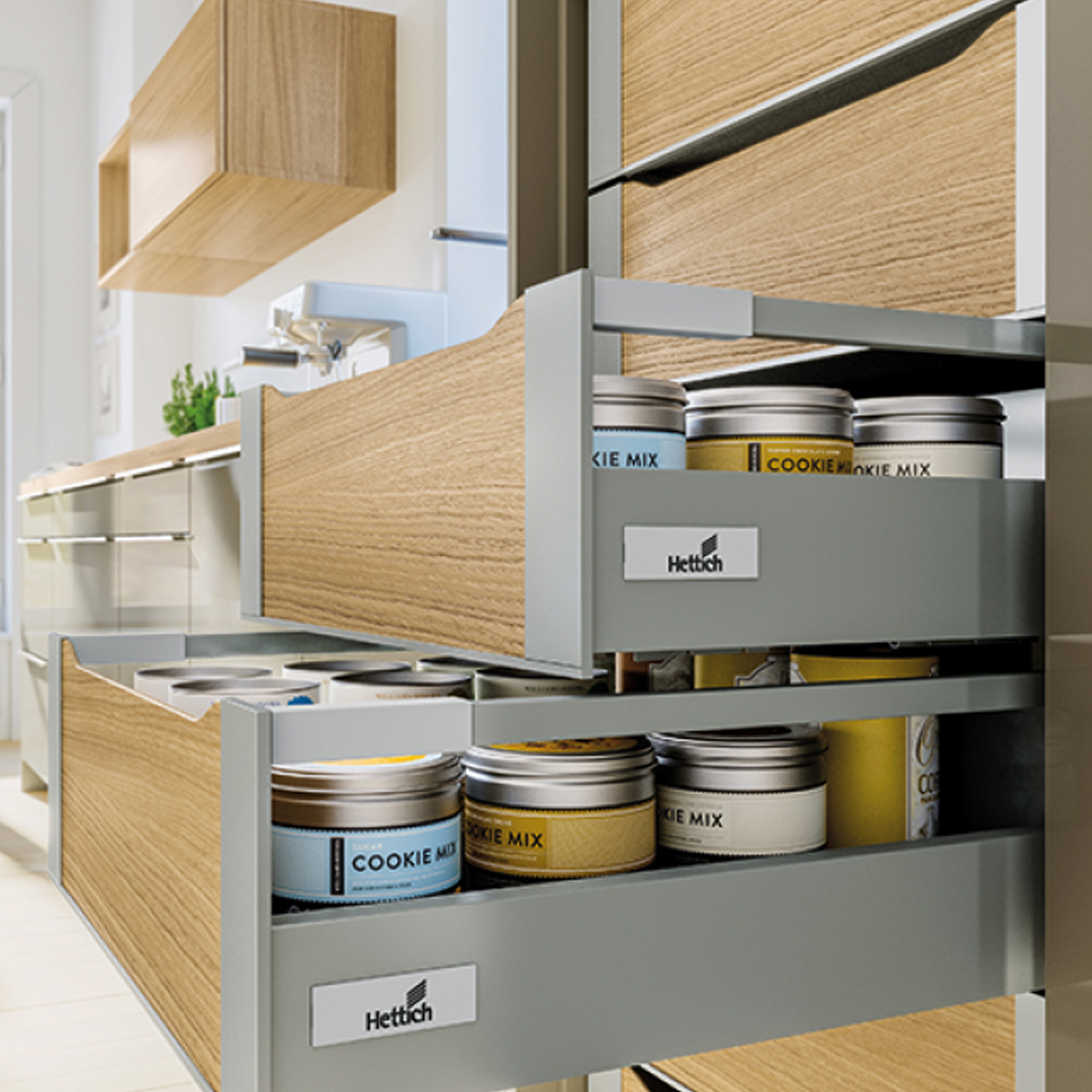 Hettich este unul din liderii mondiali, producător de feronerie și mecanisme inovative pentru piesele mobilier. Dar în acest articol o sa vorbim doar despre sertare de bucătărie.
