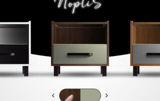 Luând în considerație soluțiile cormatice ale dormitorului fiecărui client, Noptis poate fi adaptat, oferindu-se o gama cromatica largă care va fi pusă la dispoziția clientului. Culorile pot fi modificate atât pentru carcasă cât și pentru frontul sertarului.