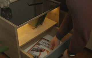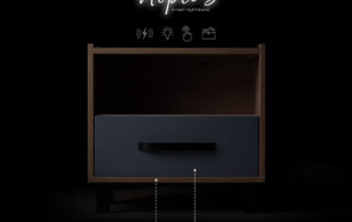 Combinația între lemn și sticlă redă un caracter rafinat și delicat noptierei, iar funcțiile pe care le are vă va ușura modul de viață. Fie că vrei să îți pui telefonul la incărcat în siguranță peste noapte, fie că vrei să pornești lumina cand mergi la baie prin întuneric, fie că pur și simplu vrei să depozitezi o carte sau o revistă, Noptis este noptiera care oferă aceste soluții.