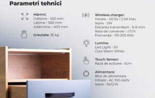 Noptis este armonia perfectă între mobilier și tehnică. Este o noptieră multifuncțională, elaborată într-un stil modern-minimalist, care este ușor de asamblat chiar și pentru un copil.